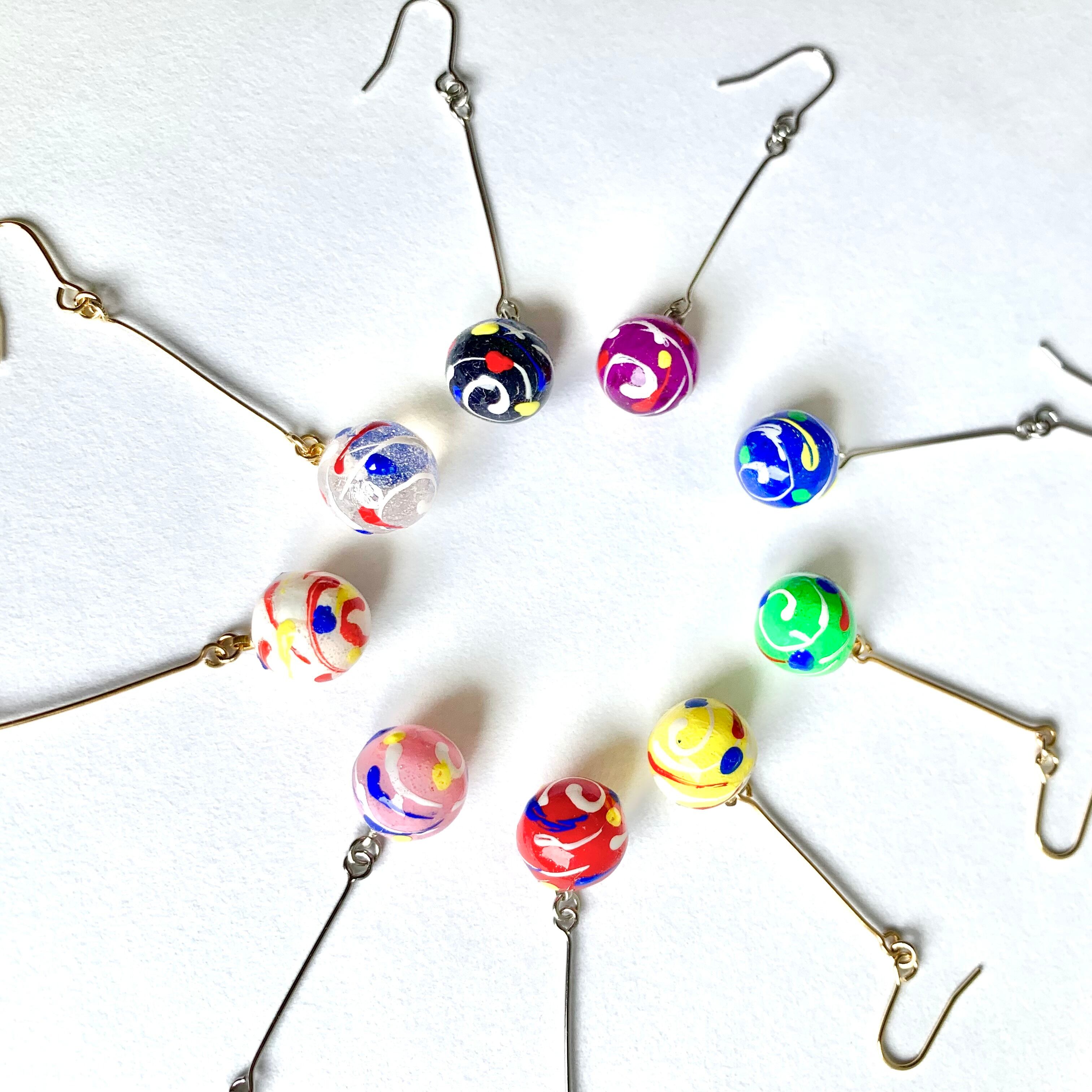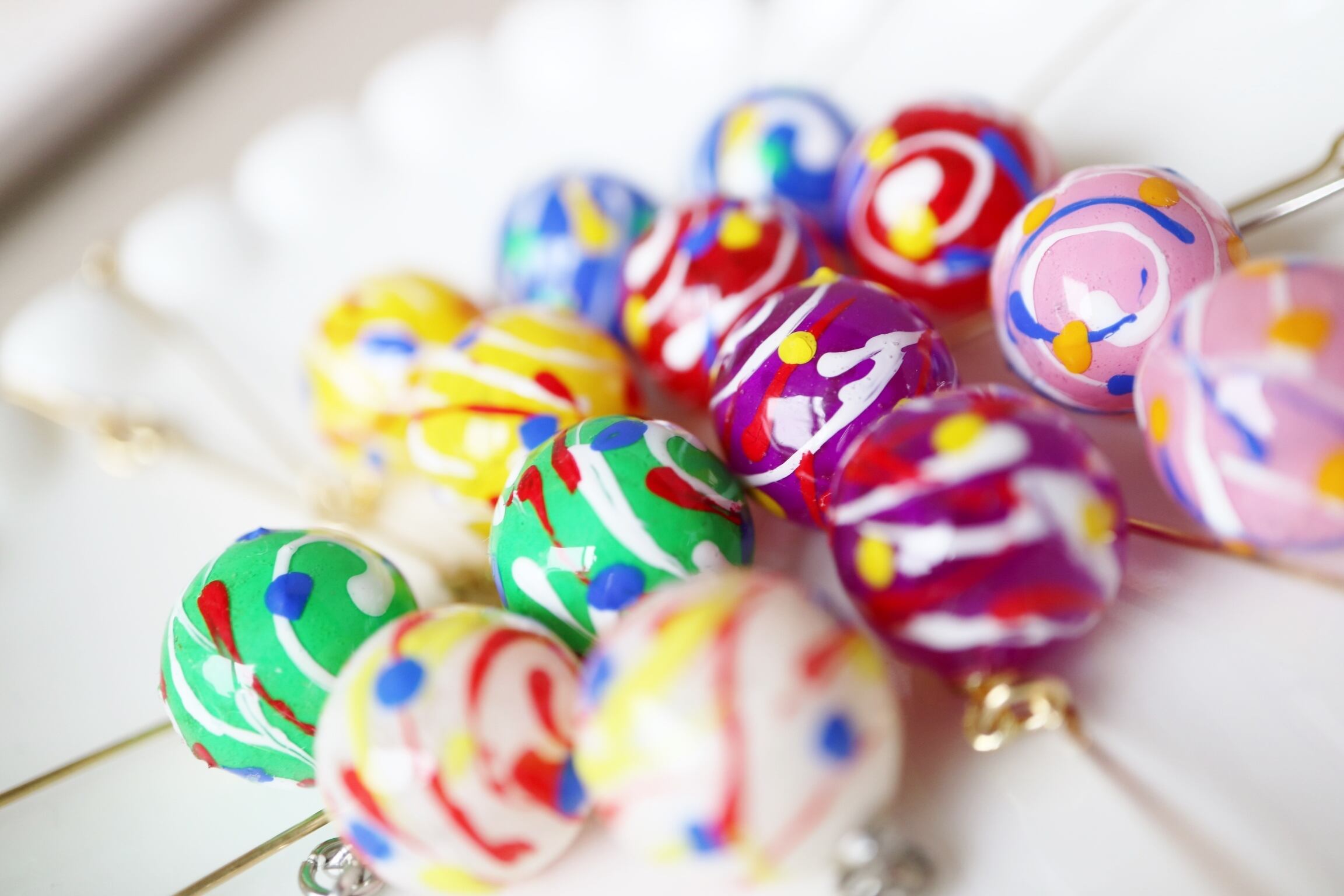 レジン、アクリル絵の具でミニチュアヨーヨーを作成。仕上げの光沢はレジンで加工しました。